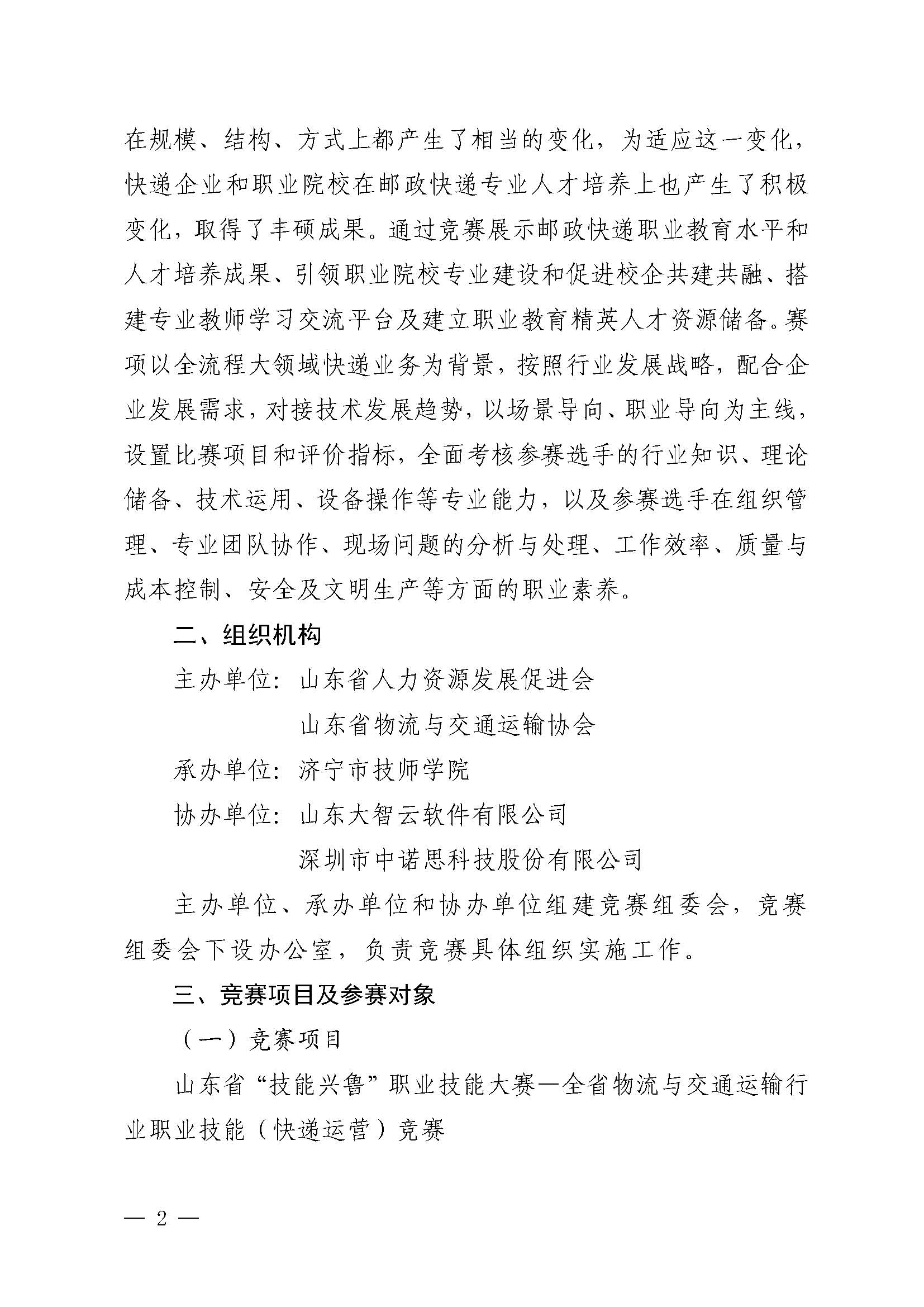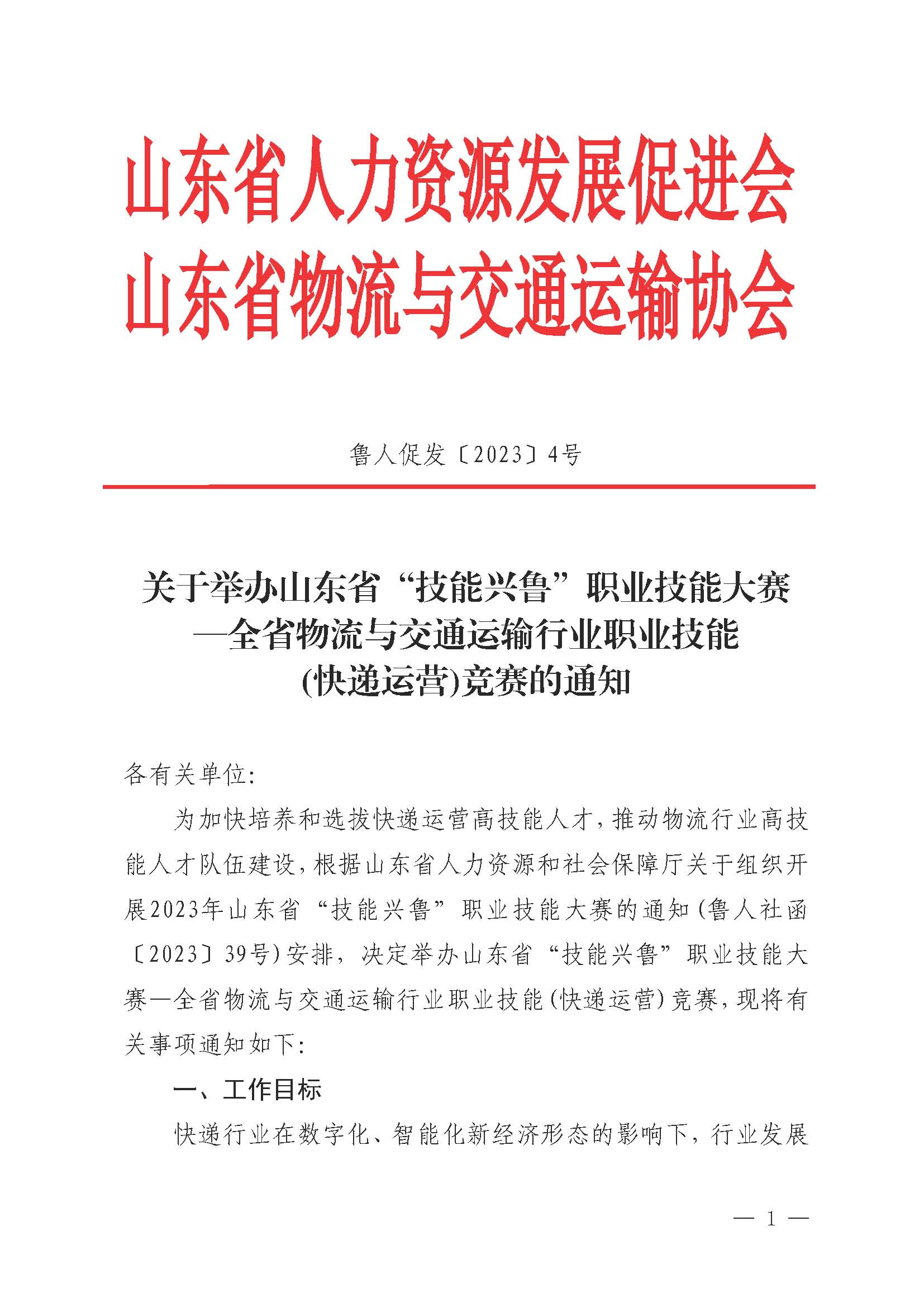 关于举办山东省技能兴鲁职业技能大赛全省物流与交通运输行业职业技能(快递运营)竞赛的通知