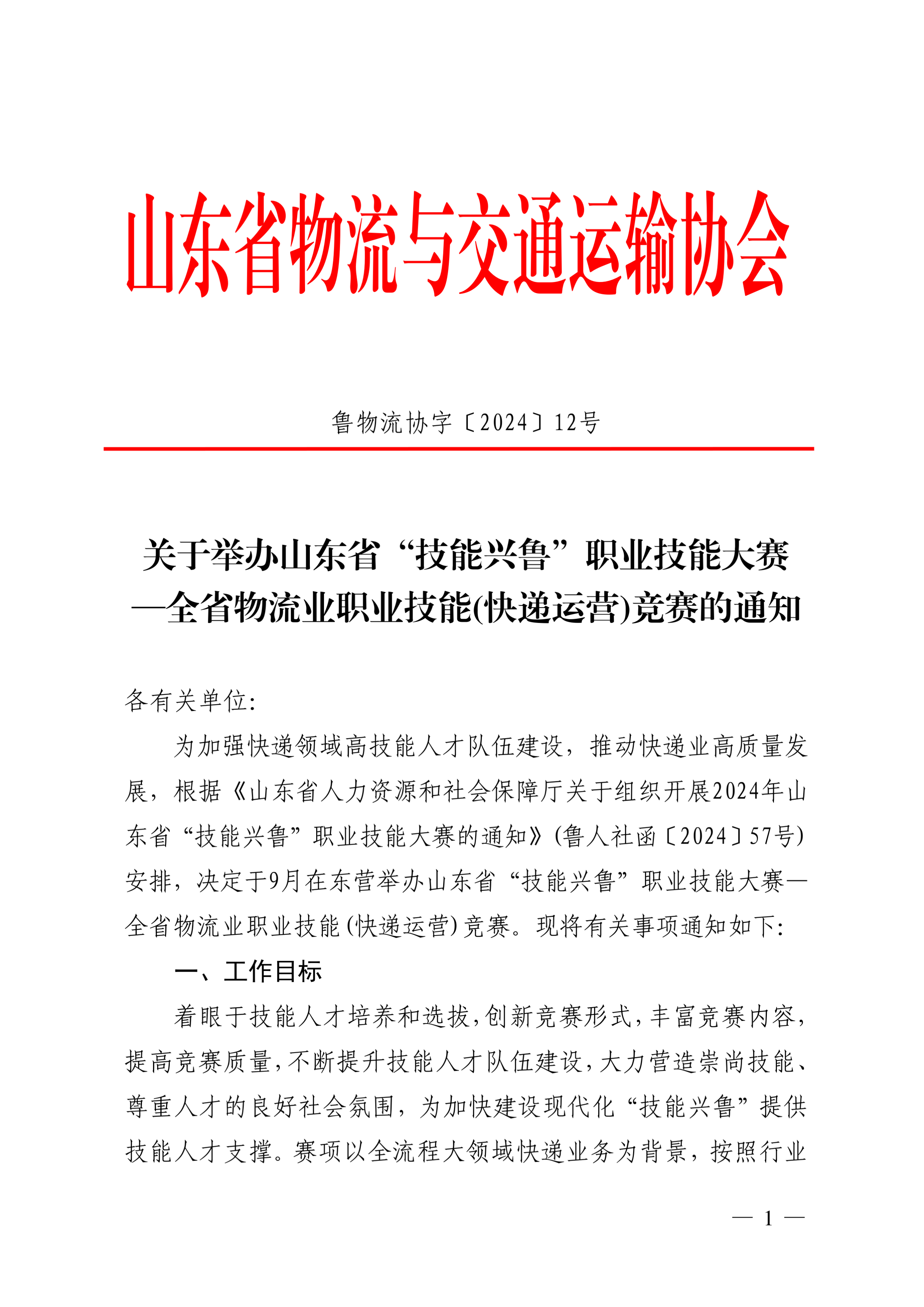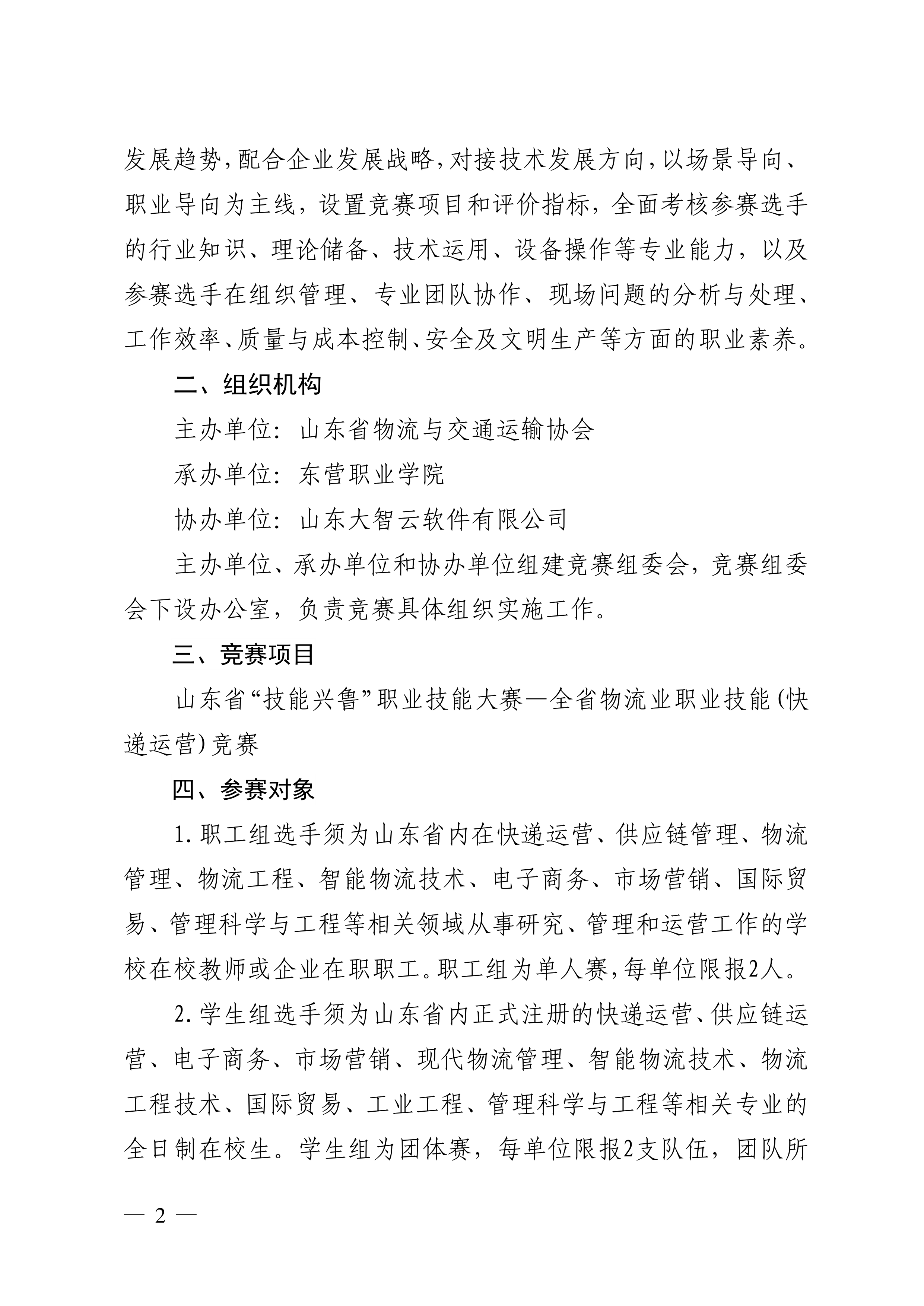 关于举办山东省技能兴鲁职业技能大赛全省物流业职业技能(快递运营)竞赛的通知