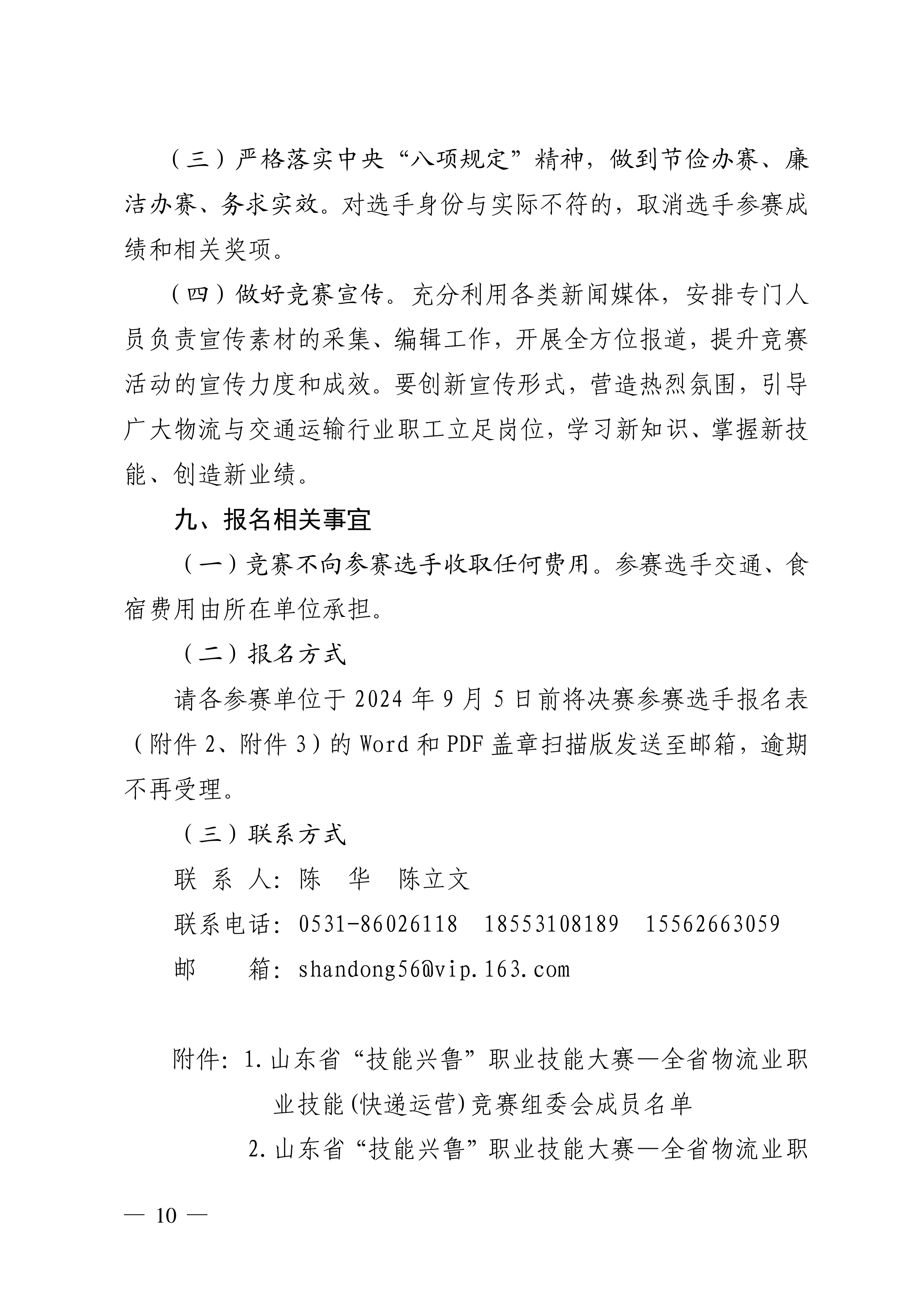 关于举办山东省技能兴鲁职业技能大赛全省物流业职业技能(快递运营)竞赛的通知(附件).docx