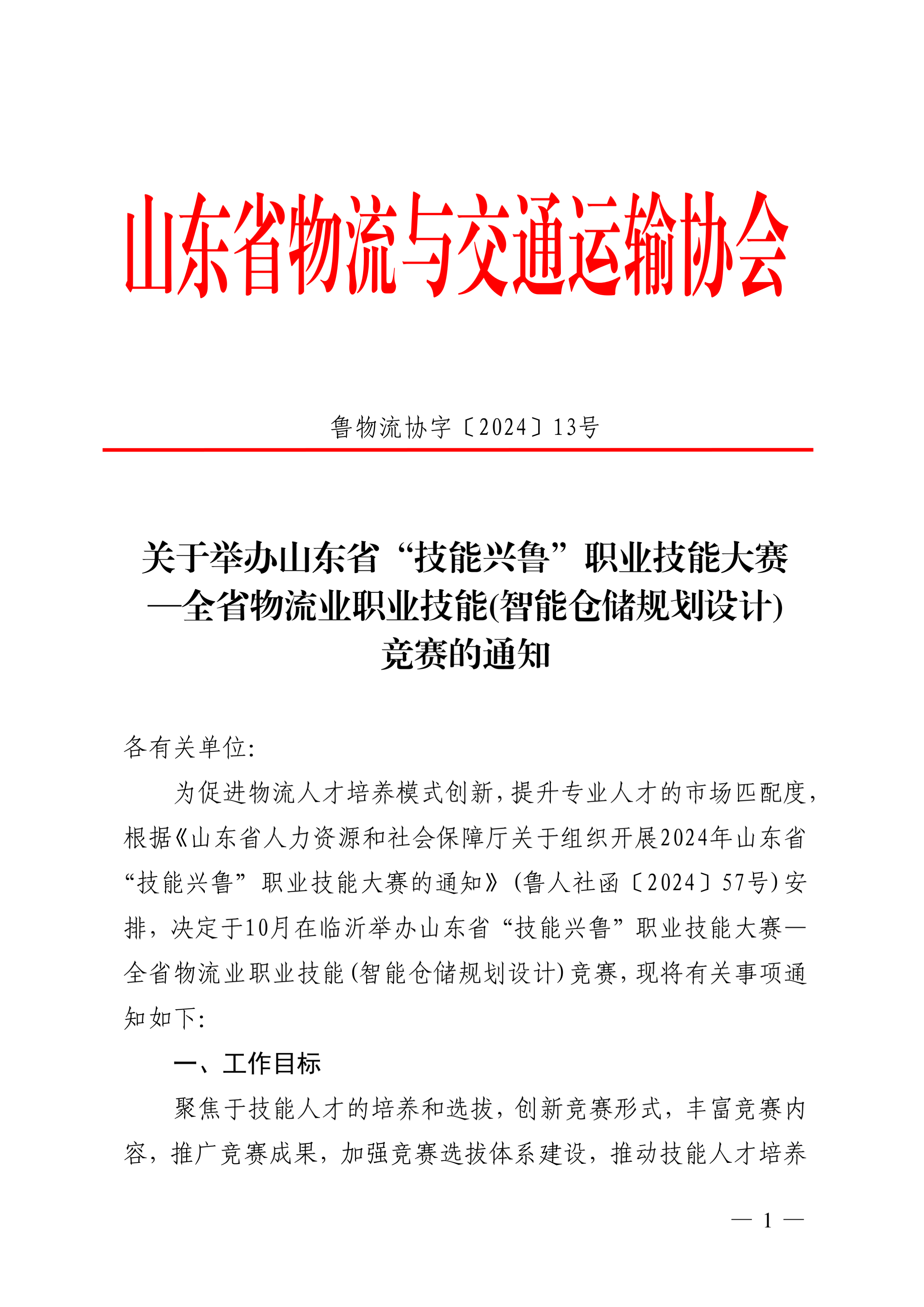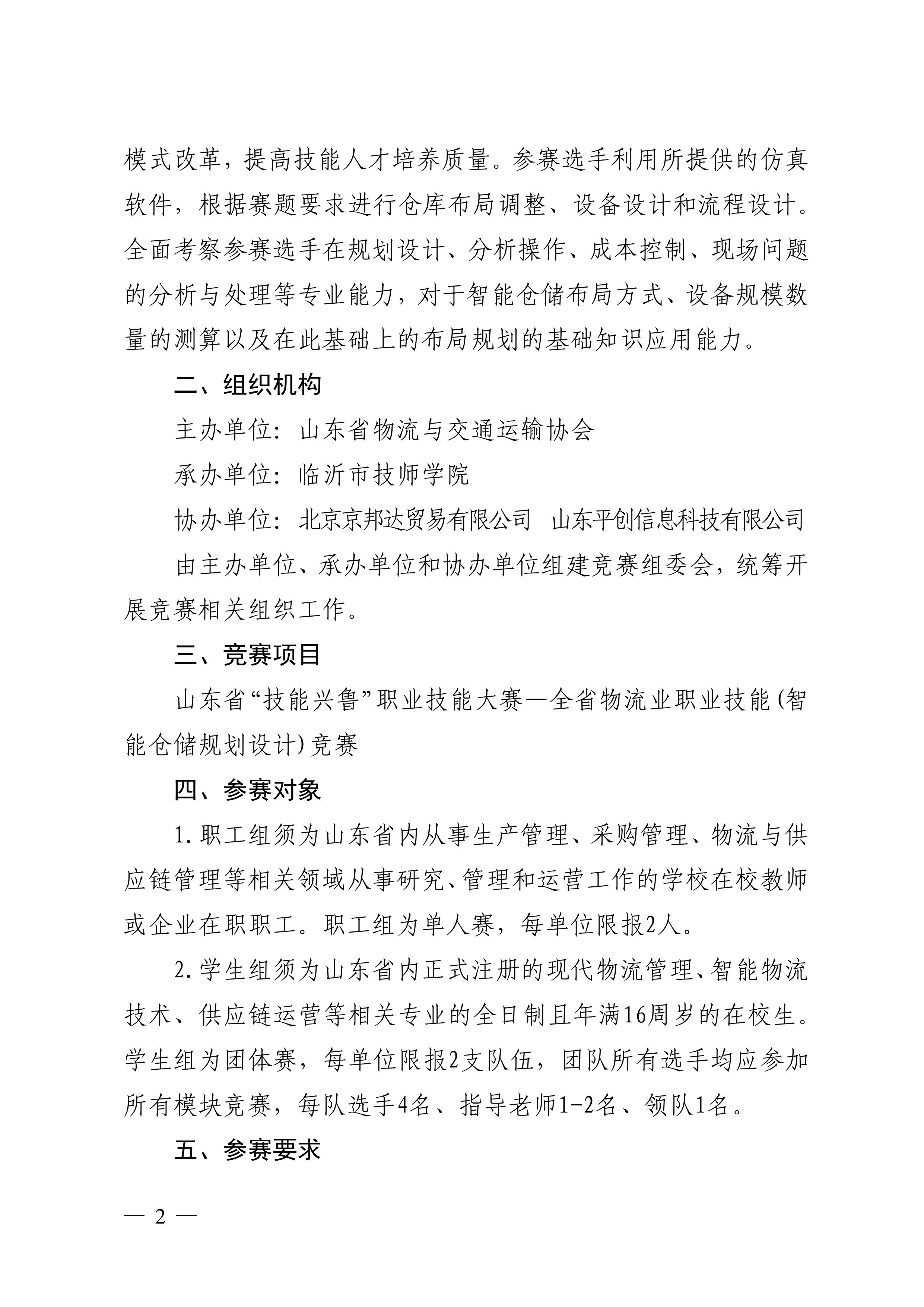 关于举办山东省“技能兴鲁”职业技能大赛—全省物流业职业技能(智能仓储规划设计)竞赛的通知