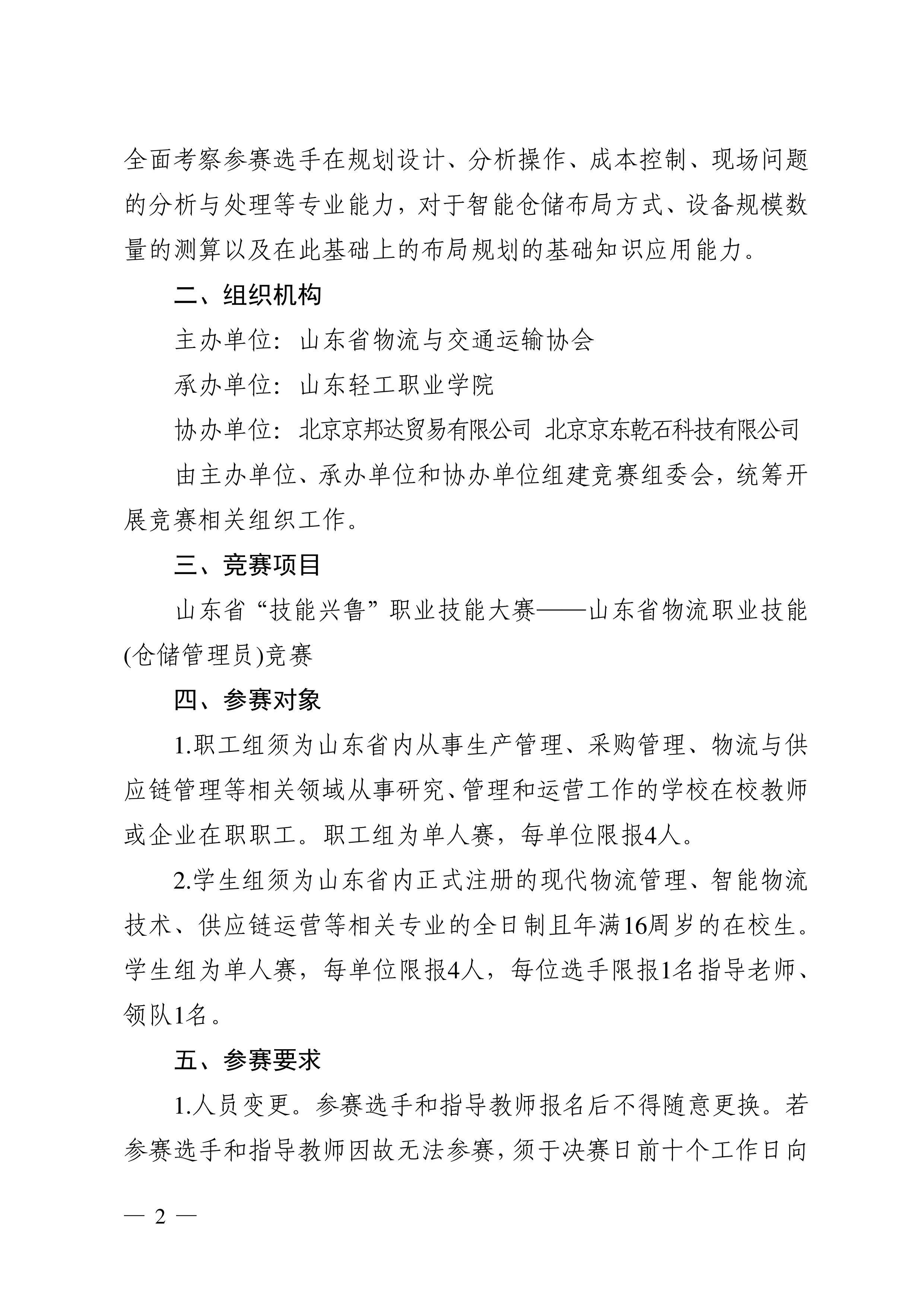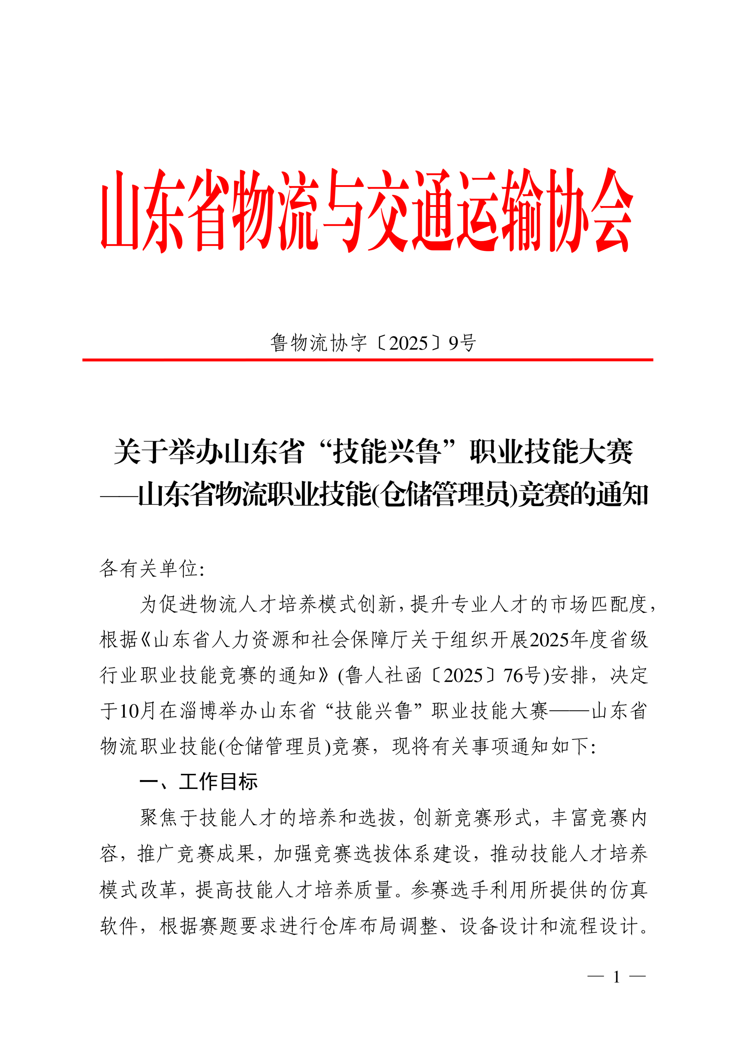 关于举办山东省技能兴鲁职业技能大赛——山东省物流职业技能(仓储管理员)竞赛的通知