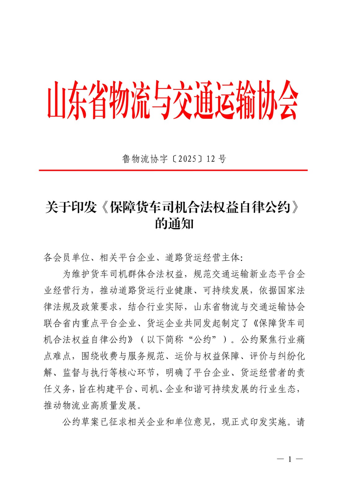 关于印发《保障货车司机合法权益自律公约》的通知 -k8体育